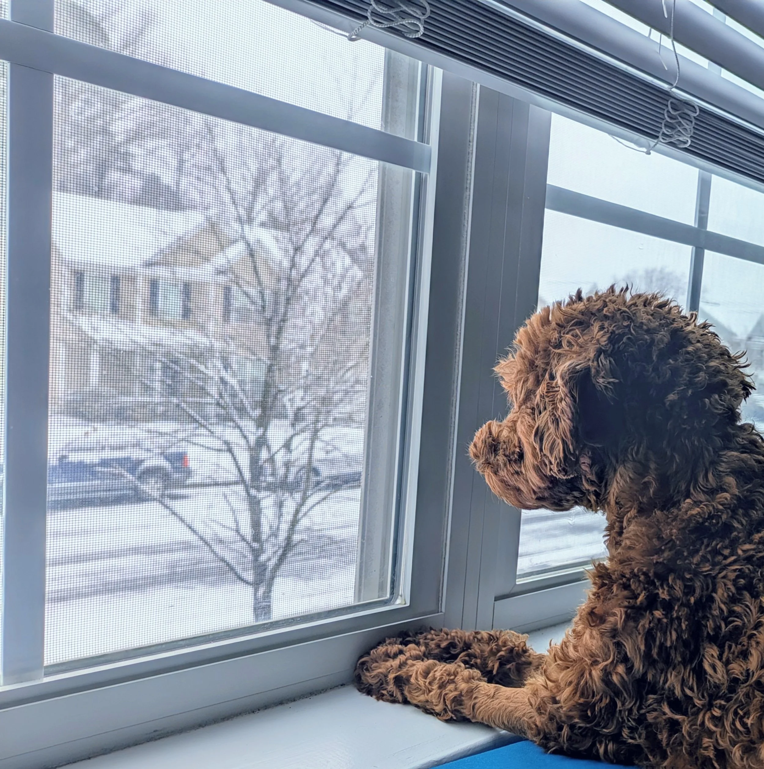 Muahahaha Sarah loves looking out the window and the snow makes the scene even better!